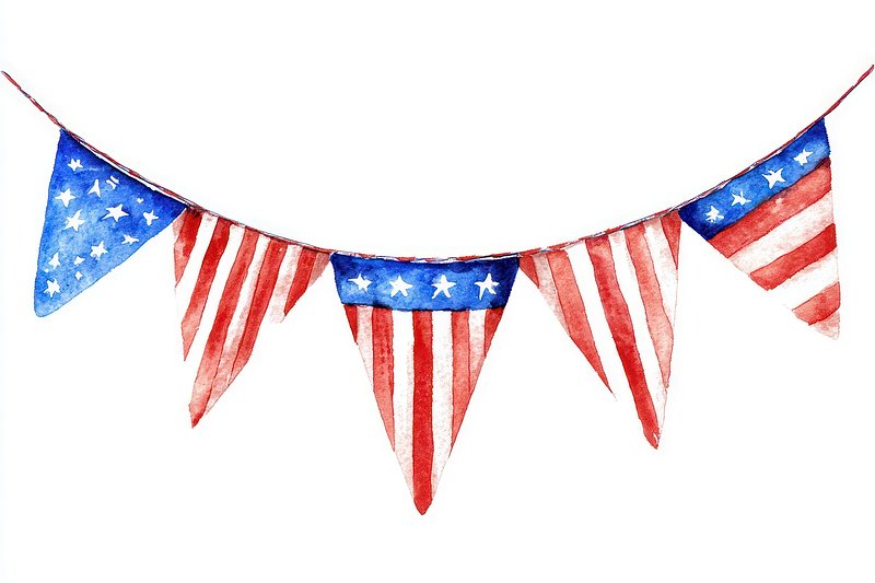 Patriotic watercolor bunting illustration. https://www.rawpixel.com/image/25281000/patriotic-watercolor-bunting-illustrationView license