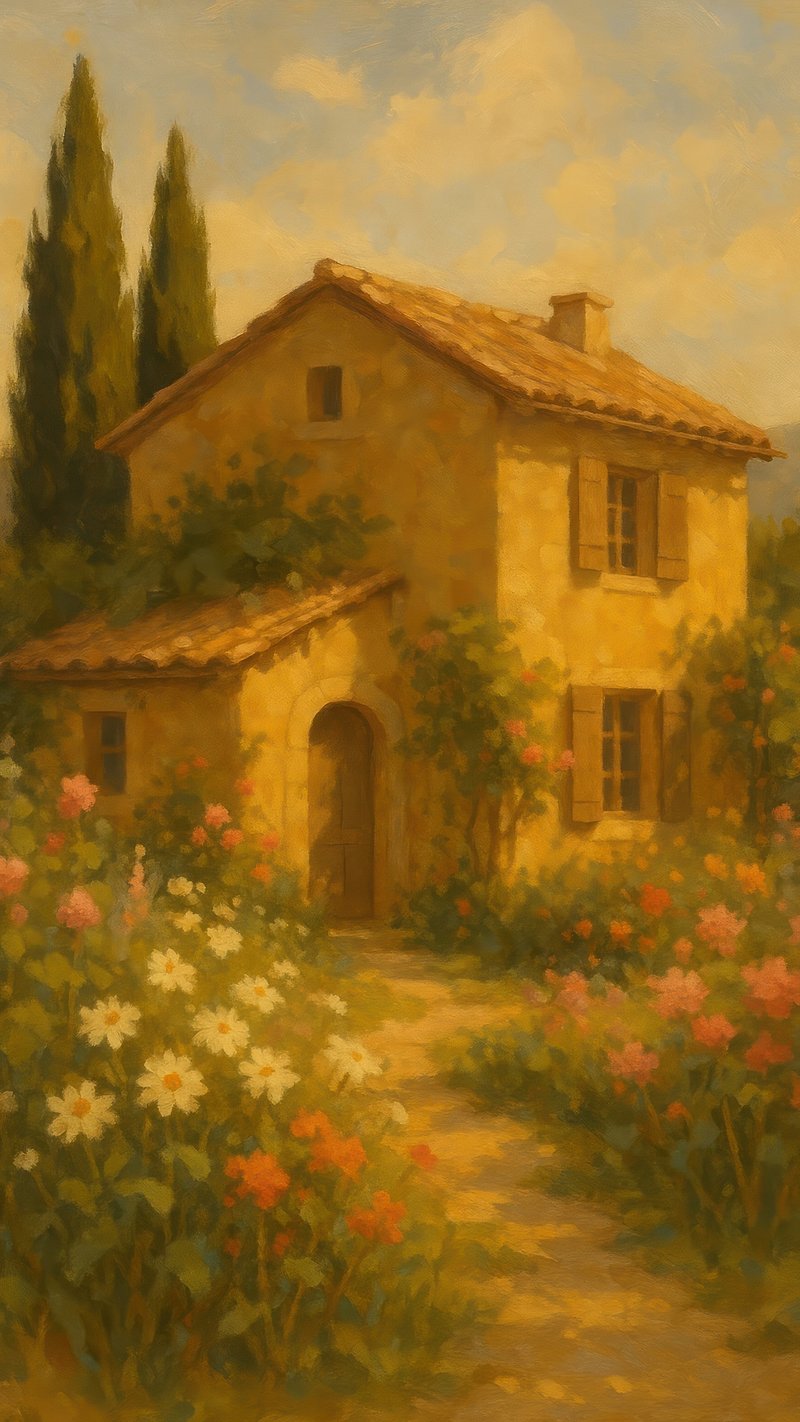 Charming rustic cottage landscape illustration. https://www.rawpixel.com/image/18390568/charming-rustic-cottage-landscape-illustrationView license