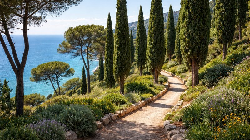 Scenic coastal path with cypress. https://www.rawpixel.com/image/25652866/scenic-coastal-path-with-cypressView license