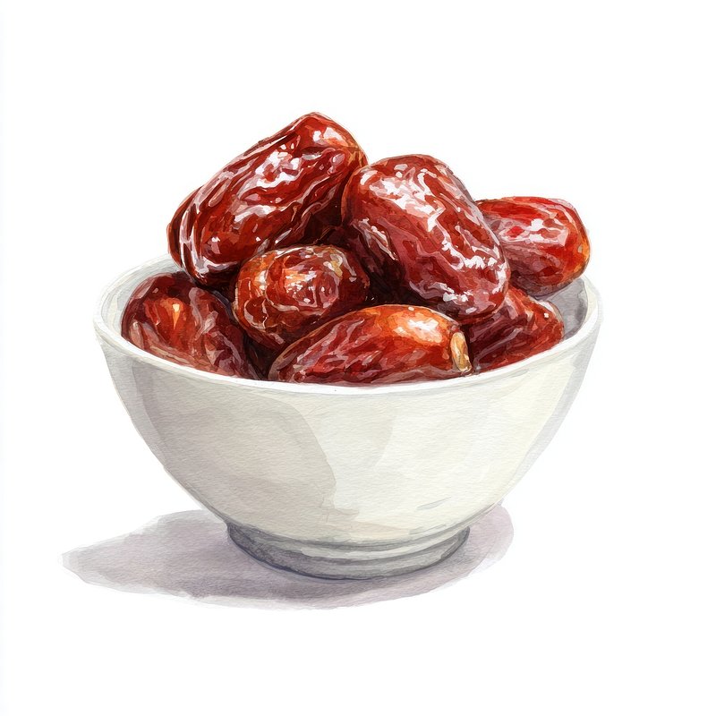 Realistic dates in ceramic bowl. https://www.rawpixel.com/image/25113675/realistic-dates-ceramic-bowlView license