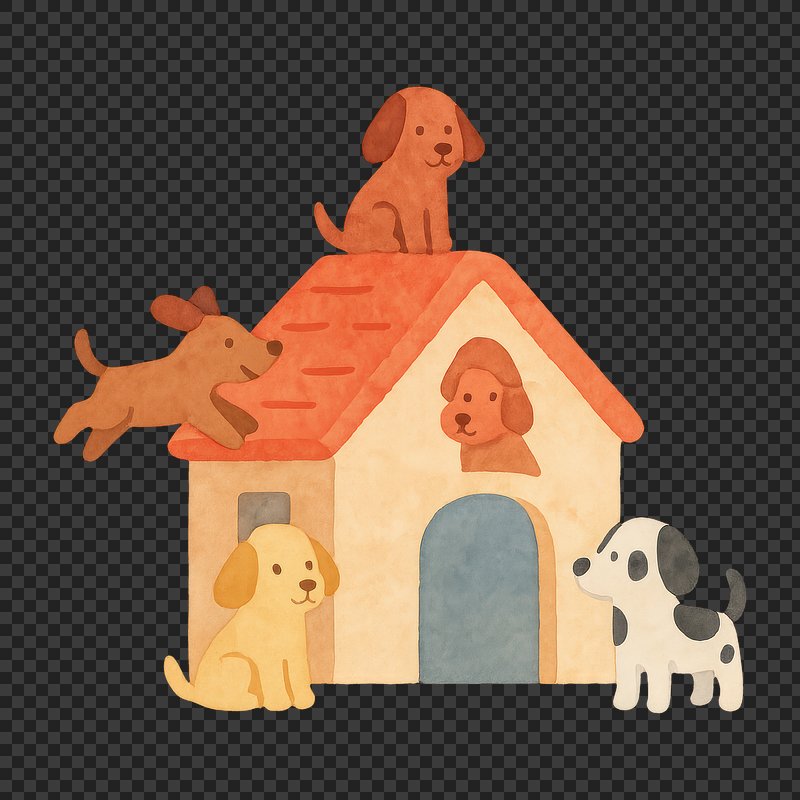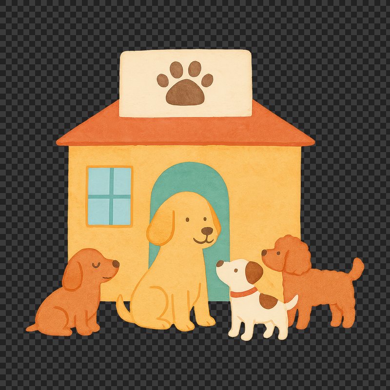 PNG Cute cartoon dogs outside kennel. https://www.rawpixel.com/image/18646756/png-cute-cartoon-dogs-outside-kennelView license