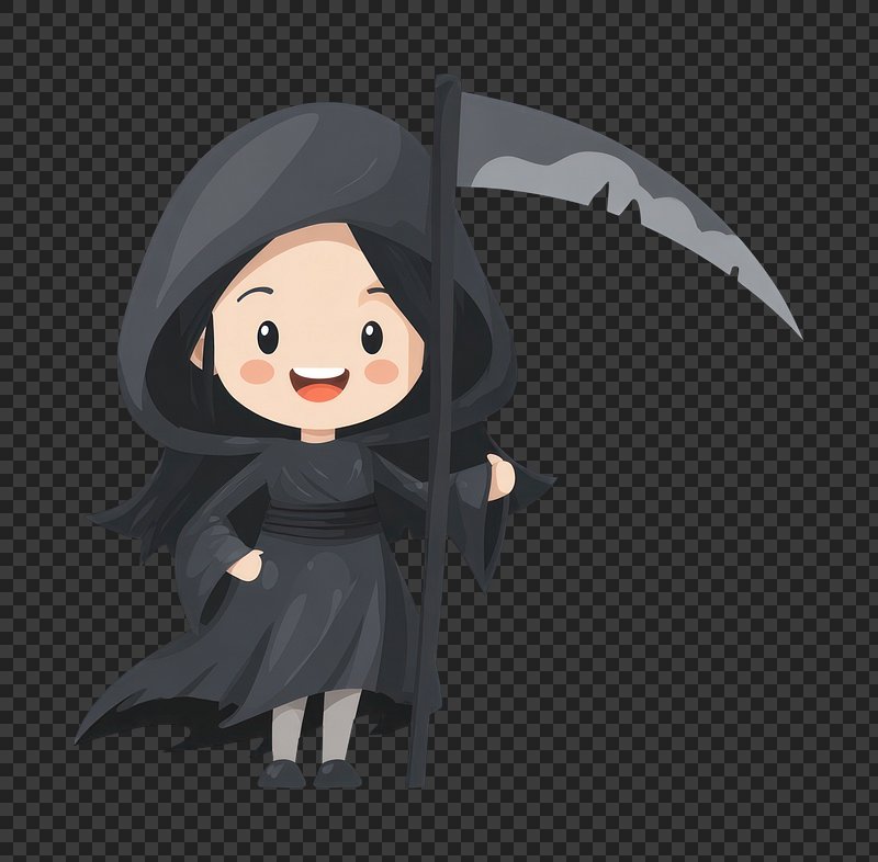PNG Cute cartoon grim reaper illustration. https://www.rawpixel.com/image/21356467/png-cute-cartoon-grim-reaper-illustrationView license