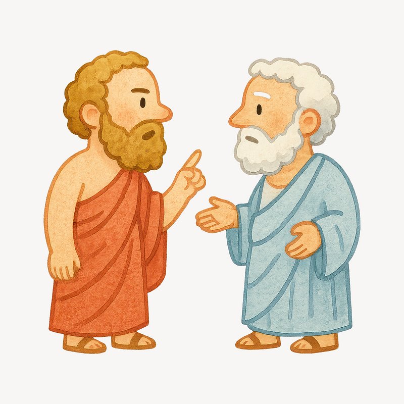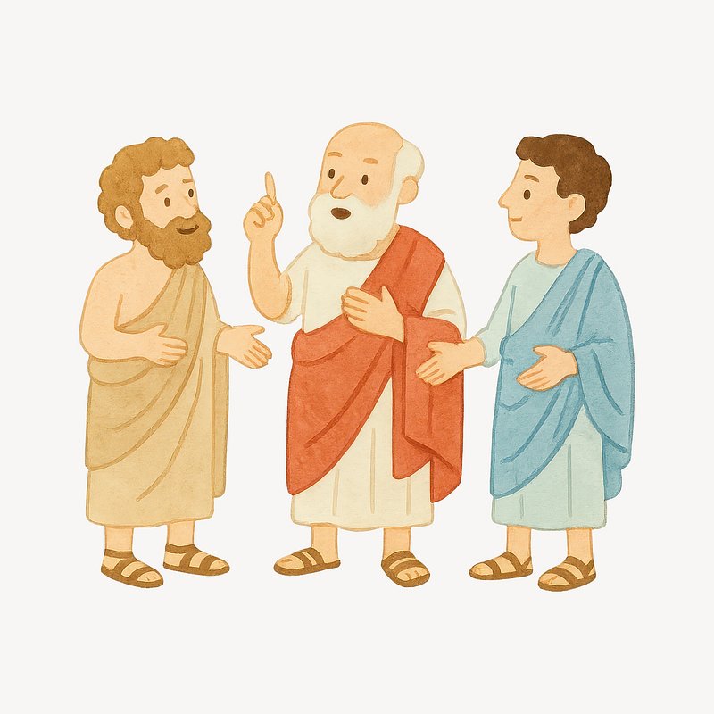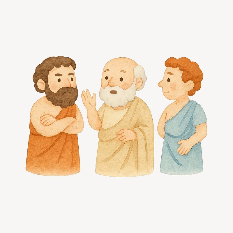 Cartoon philosophers discussing ideas. https://www.rawpixel.com/image/20750957/cartoon-philosophers-discussing-ideasView license