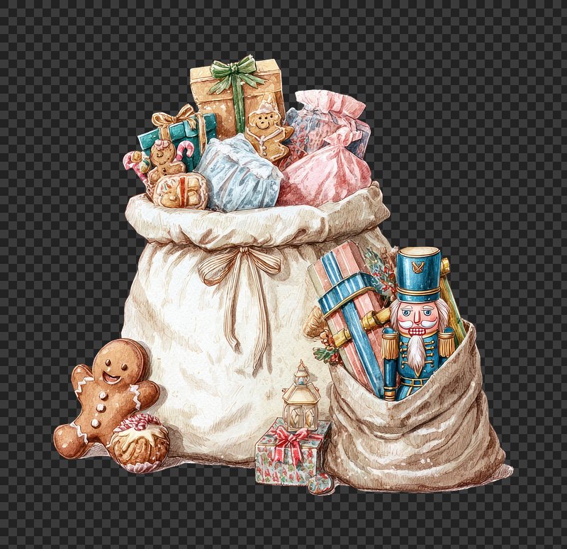PNG Festive holiday gift sack illustration. https://www.rawpixel.com/image/24019446/png-festive-holiday-gift-sack-illustrationView license