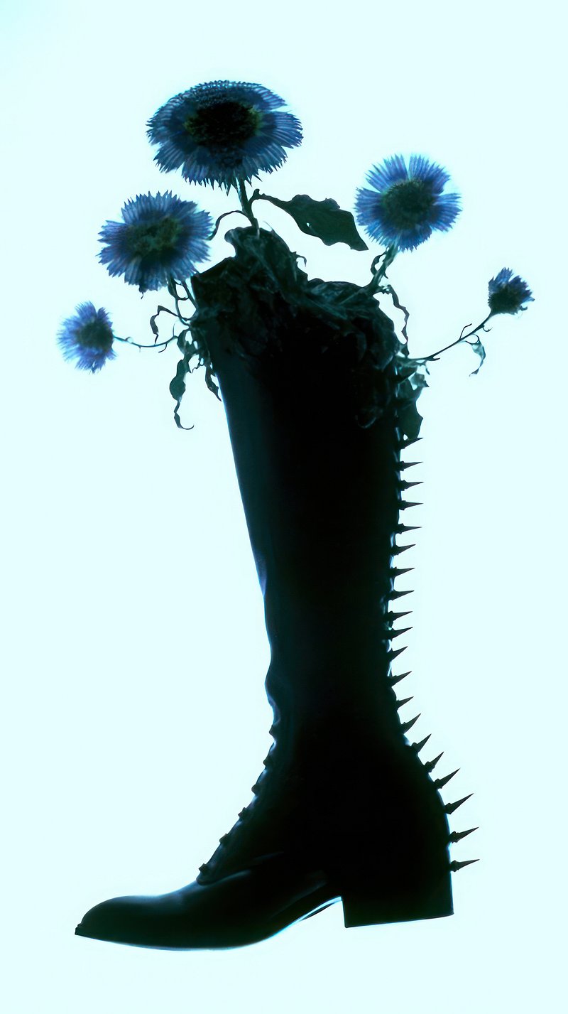 Edgy floral boot silhouette wallpaper. https://www.rawpixel.com/image/25176777/edgy-floral-boot-silhouette-wallpaperView license