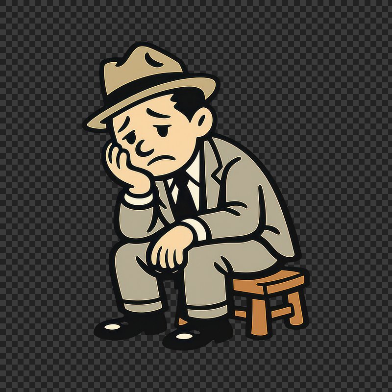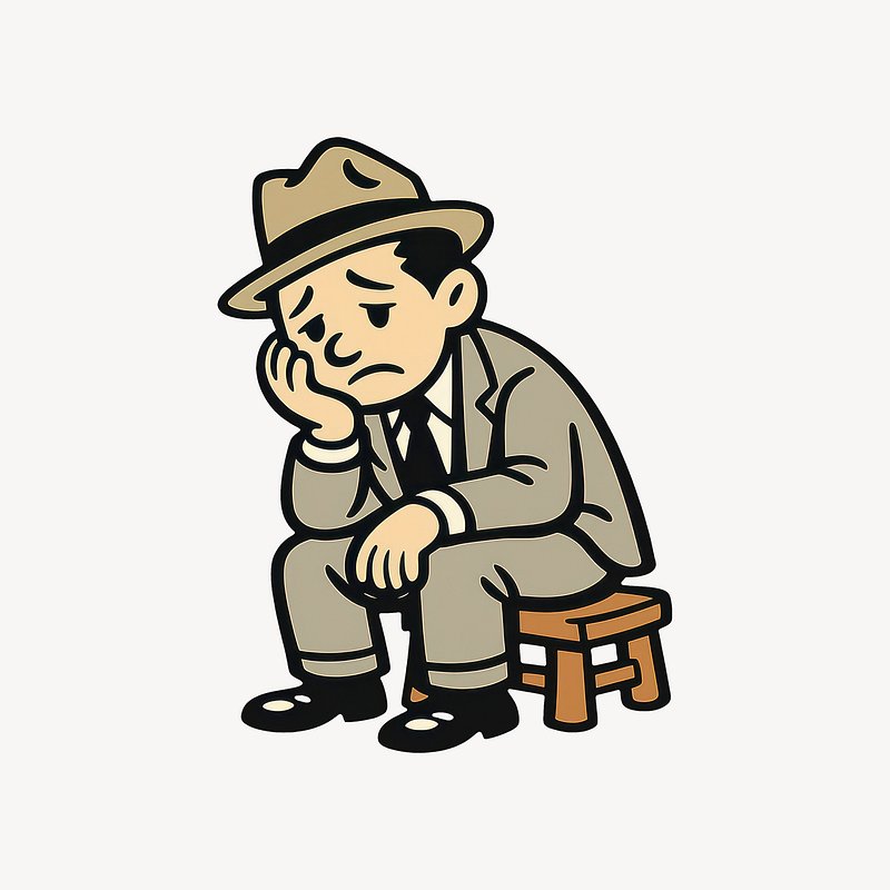 Sad man sitting stool cartoon. https://www.rawpixel.com/image/25753630/sad-man-sitting-stool-cartoonView license