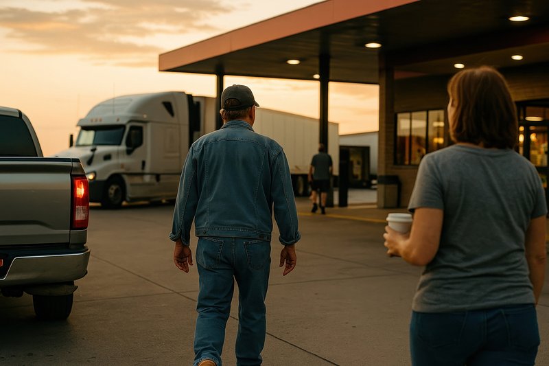 Travelers at roadside truck stop https://www.rawpixel.com/image/17793389/travelers-roadside-truck-stopView license