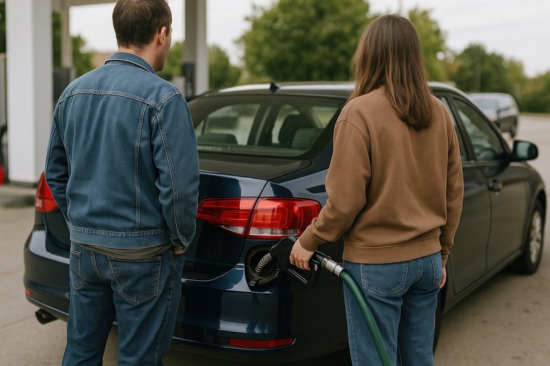 Couple refueling car together outdoors. https://www.rawpixel.com/image/18069460/couple-refueling-car-together-outdoorsView license