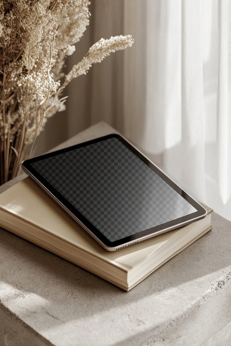 Tablet on book mockup png, transparent design https://www.rawpixel.com/image/21720057/tablet-book-mockup-png-transparent-designView license