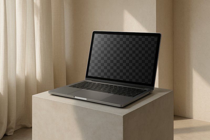 Elegant laptop mockup on podium, transparent design https://www.rawpixel.com/image/22141868/elegant-laptop-mockup-podium-transparent-designView license