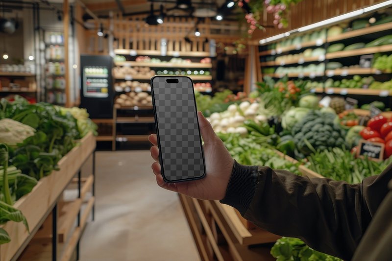 Smartphone mockup in grocery store png, transparent design https://www.rawpixel.com/image/23167118/smartphone-mockup-grocery-store-png-transparent-designView license