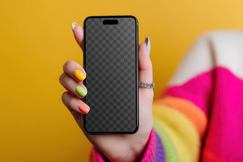 Colorful hand holding smartphone mockup png, transparent design https://www.rawpixel.com/image/23031512/colorful-hand-holding-smartphone-mockup-png-transparent-designView license