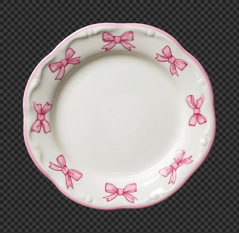 PNG Decorative plate with pink bows https://www.rawpixel.com/image/24020285/png-decorative-plate-with-pink-bowsView license
