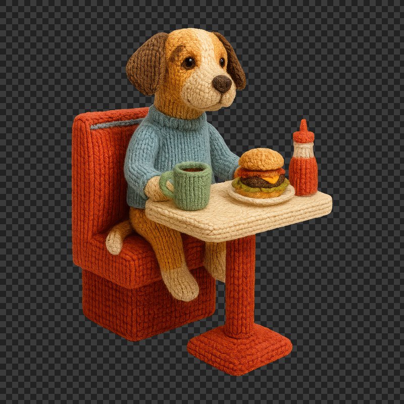 PNG Knitted dog enjoying meal. https://www.rawpixel.com/image/24445385/png-knitted-dog-enjoying-mealView license