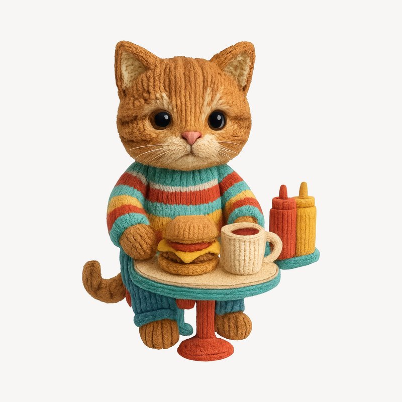Cute knitted cat dining https://www.rawpixel.com/image/24659209/cute-knitted-cat-diningView license