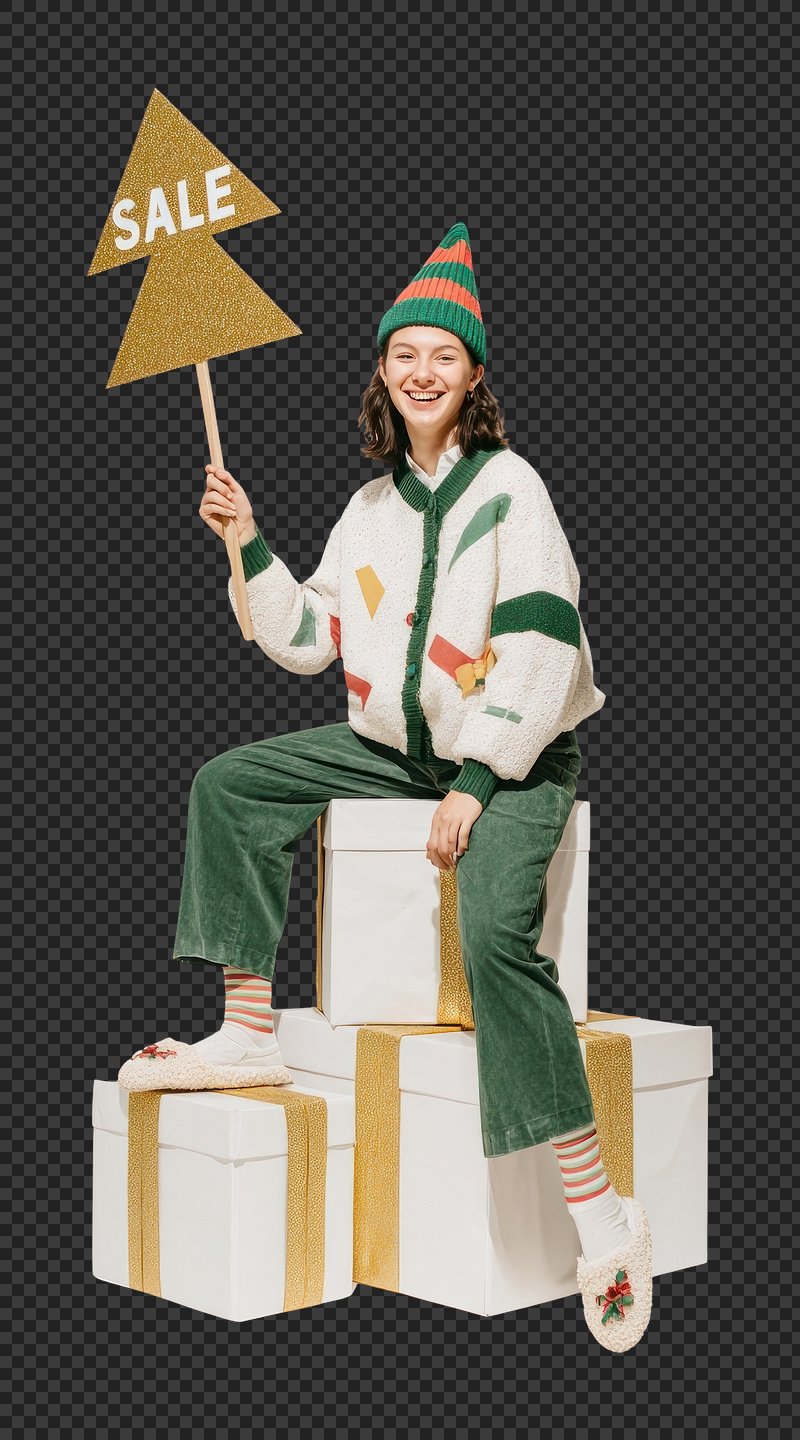PNG Festive elf promotes holiday sale. https://www.rawpixel.com/image/20890198/png-festive-elf-promotes-holiday-saleView license