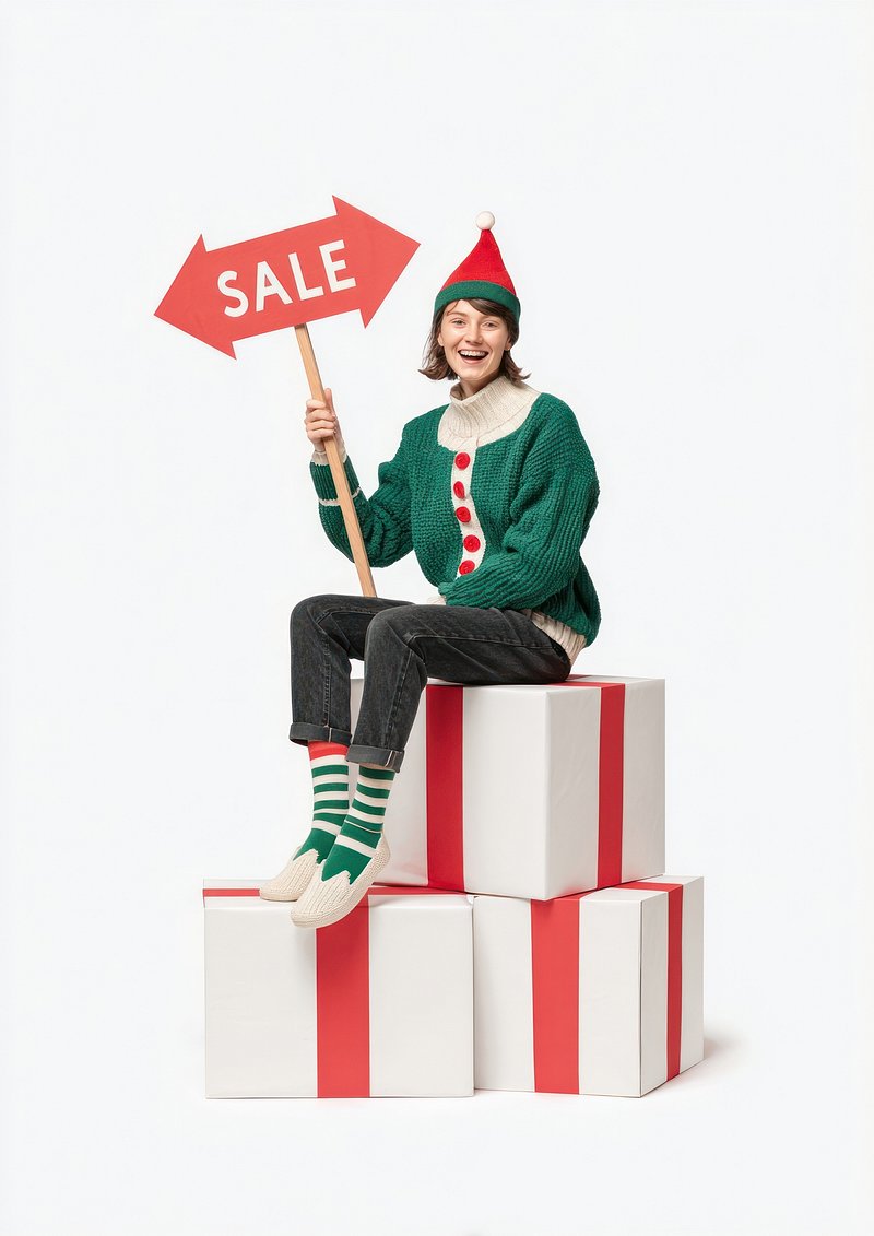 Festive elf promotes holiday sale. https://www.rawpixel.com/image/20561845/festive-elf-promotes-holiday-saleView license