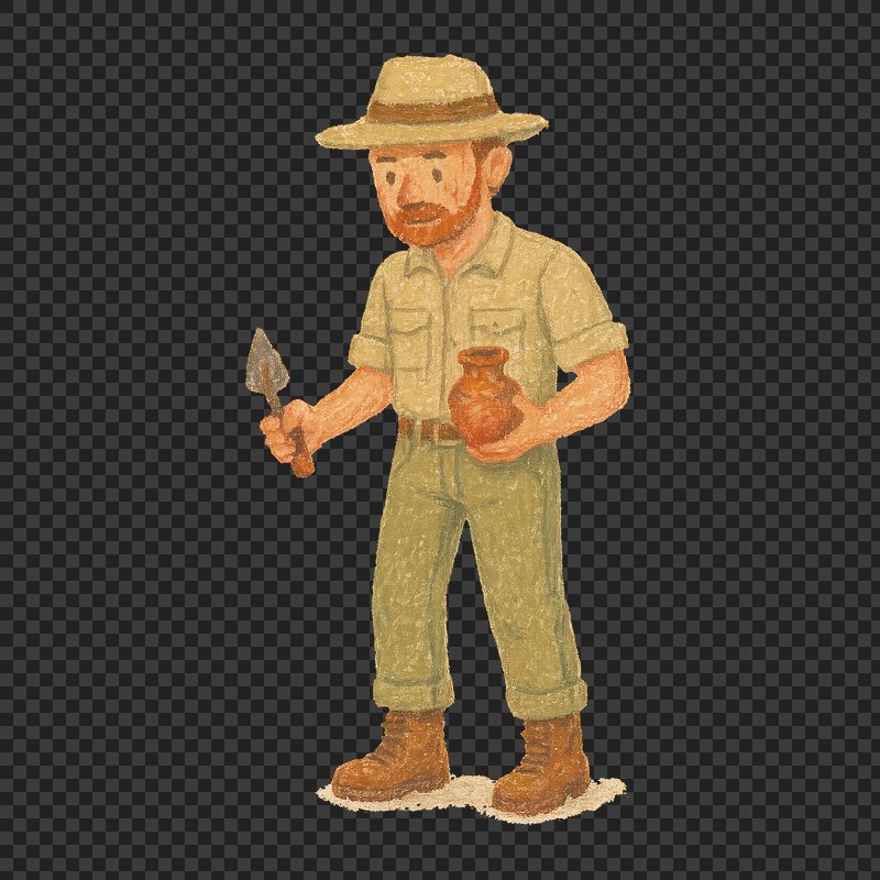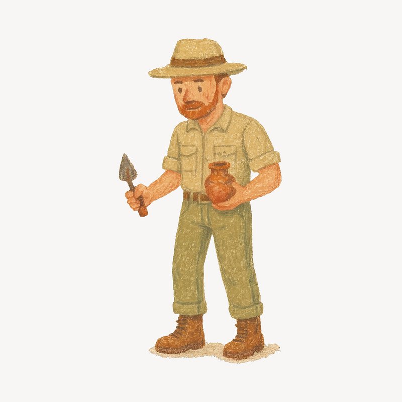 Cartoon archaeologist with ancient artifact. https://www.rawpixel.com/image/25530542/cartoon-archaeologist-with-ancient-artifactView license
