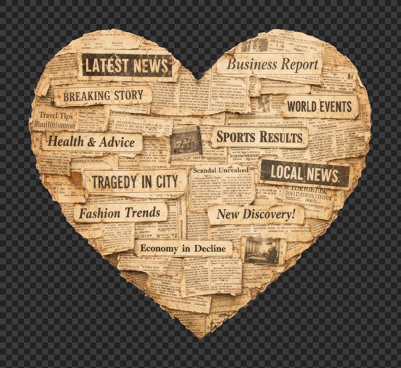 PNG Heart-shaped collage of newspapers. https://www.rawpixel.com/image/25866778/png-heart-shaped-collage-newspapersView license