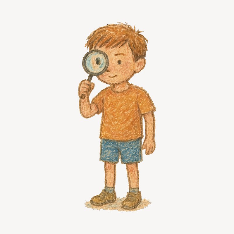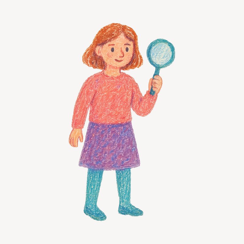 Child holding magnifying glass illustration. https://www.rawpixel.com/image/25526105/child-holding-magnifying-glass-illustrationView license