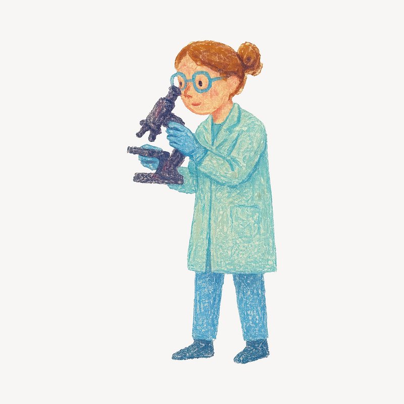 Scientist examining microscope illustration. https://www.rawpixel.com/image/25526601/scientist-examining-microscope-illustrationView license