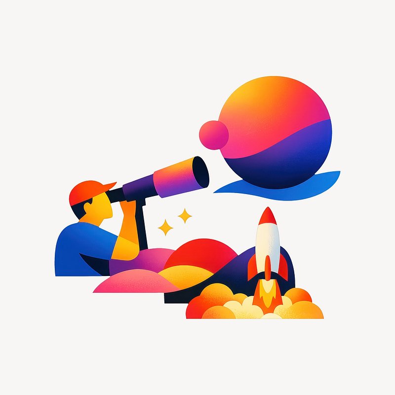 Exploration, discovery, colorful illustration, space. https://www.rawpixel.com/image/25786338/exploration-discovery-colorful-illustration-spaceView license