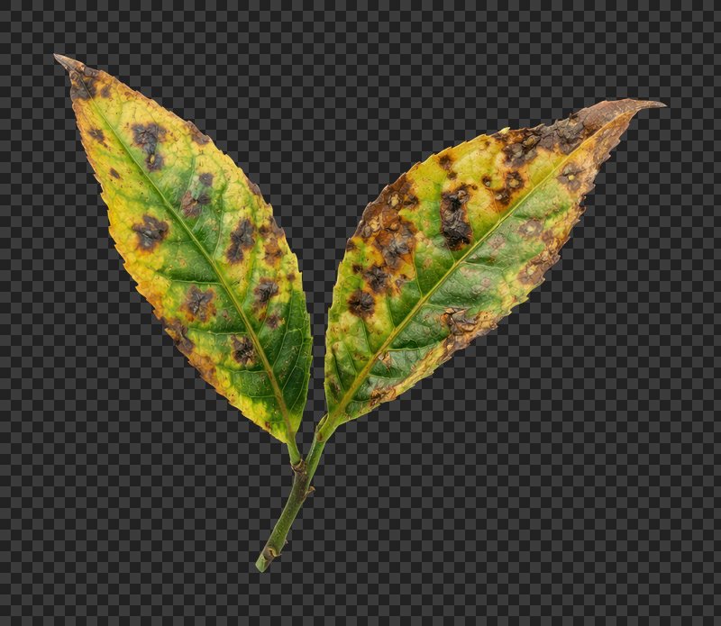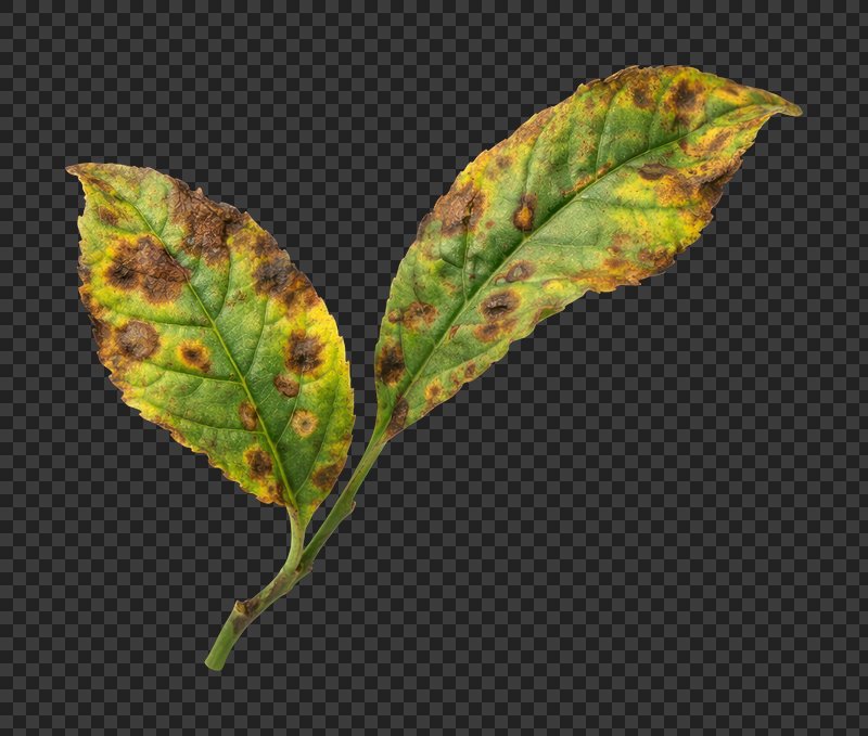 PNG Diseased leaves with brown spots. https://www.rawpixel.com/image/25860500/png-diseased-leaves-with-brown-spotsView license