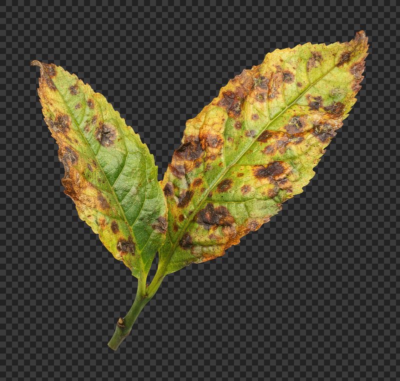 PNG Diseased leaves with brown spots. https://www.rawpixel.com/image/25865599/png-diseased-leaves-with-brown-spotsView license