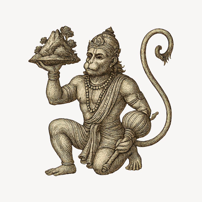 Hanuman carrying mountain illustration. https://www.rawpixel.com/image/24344068/hanuman-carrying-mountain-illustrationView license