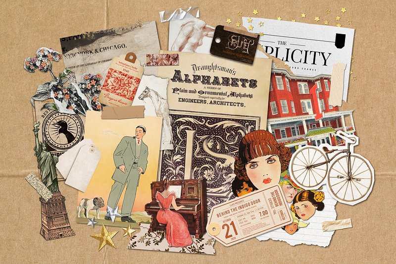 Vintage collage with retro elements, old tickets, ads, and illustrations https://www.rawpixel.com/image/22798767/image-background-flower-png-starView license