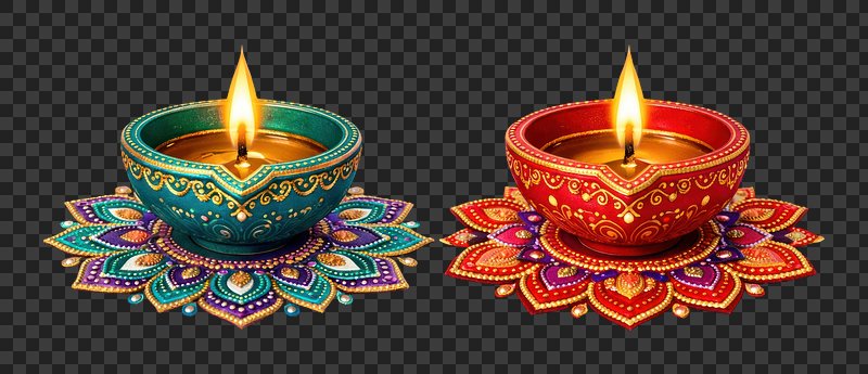 PNG Colorful decorative Diwali oil lamps https://www.rawpixel.com/image/25858535/png-colorful-decorative-diwali-oil-lampsView license