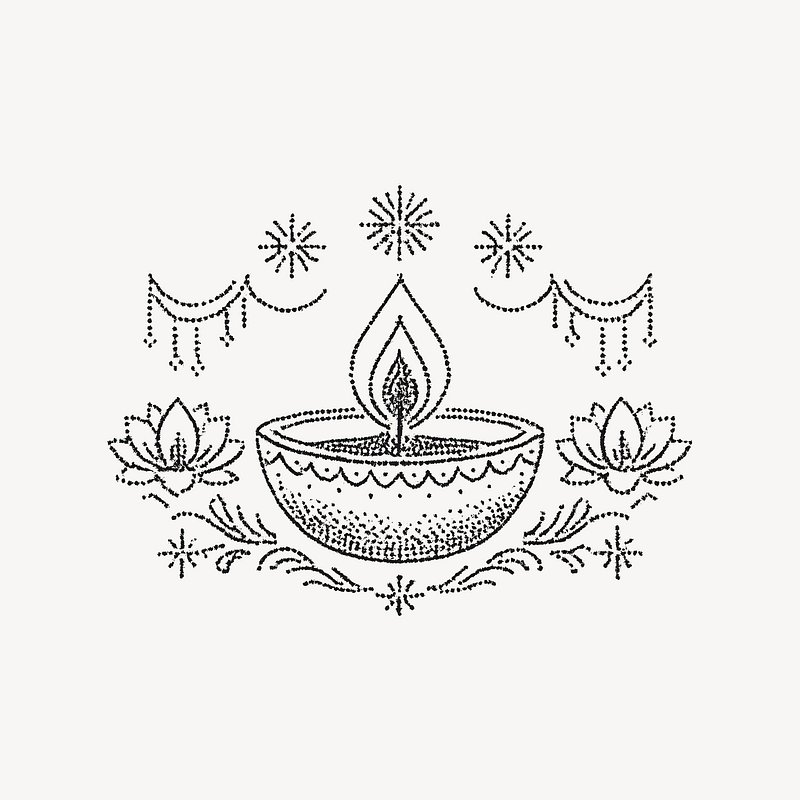 Decorative diya line art illustration. https://www.rawpixel.com/image/24336947/decorative-diya-line-art-illustrationView license