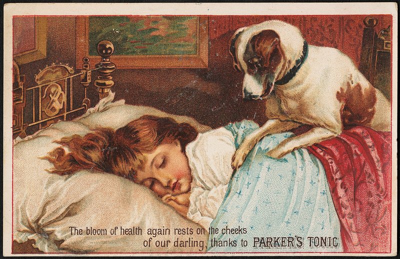 The bloom of health again rests on the cheeks of our darling, thanks to Parker's Tonic https://www.rawpixel.com/image/8908707/image-art-medicines-vintageFree Image from public domain license