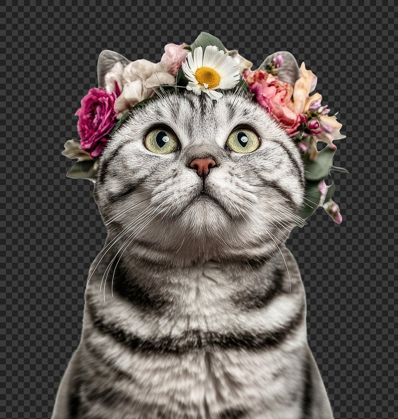 PNG American shorthair cat flower crown cute. https://www.rawpixel.com/image/24953358/png-american-shorthair-cat-flower-crown-cuteView license
