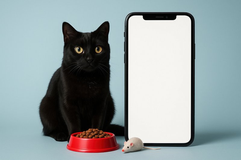 Cat, smartphone, pet food display. https://www.rawpixel.com/image/24364963/cat-smartphone-pet-food-displayView license