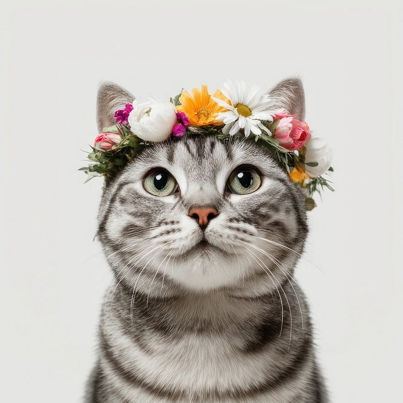 American shorthair cat photography flowers crown. https://www.rawpixel.com/image/24906197/american-shorthair-cat-photography-flowers-crownView license