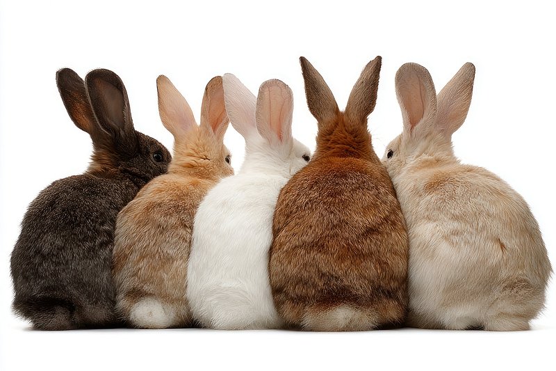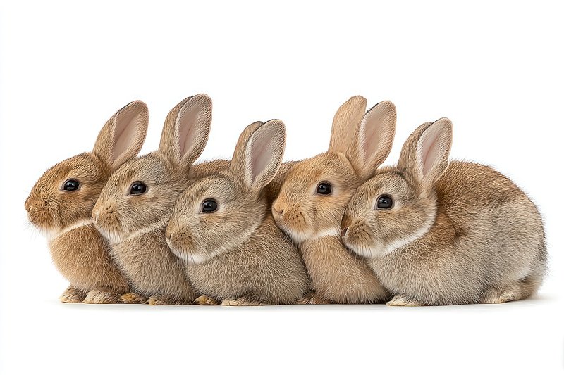 Five rabbits sitting together. https://www.rawpixel.com/image/24938794/five-rabbits-sitting-togetherView license