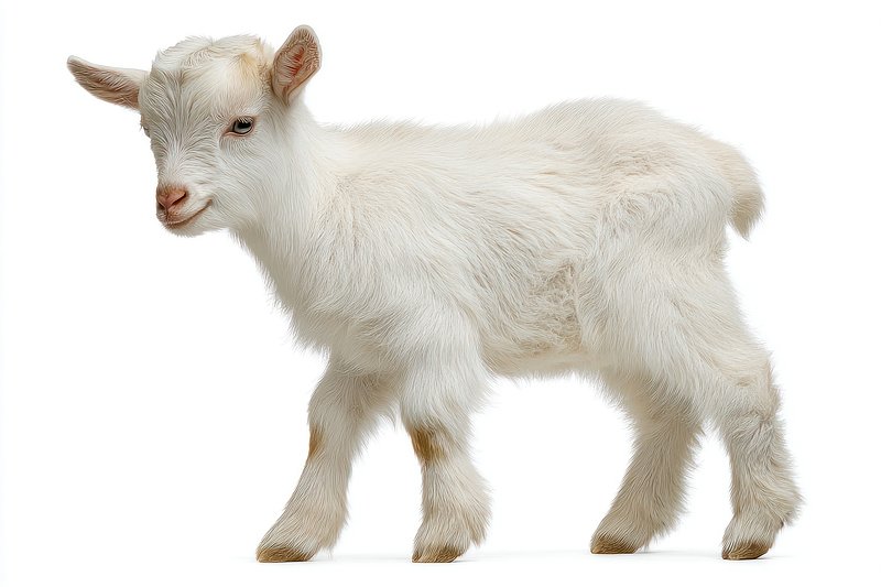 Adorable white baby goat standing. https://www.rawpixel.com/image/25427020/adorable-white-baby-goat-standingView license