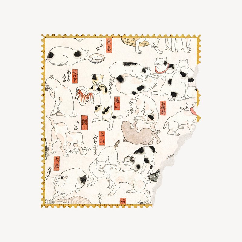 PNG Cats (1847-1850) vintage Japanese woodblock print by Utagawa Kuniyoshi. Remixed by rawpixel. https://www.rawpixel.com/image/25427907/png-cat-paperView license