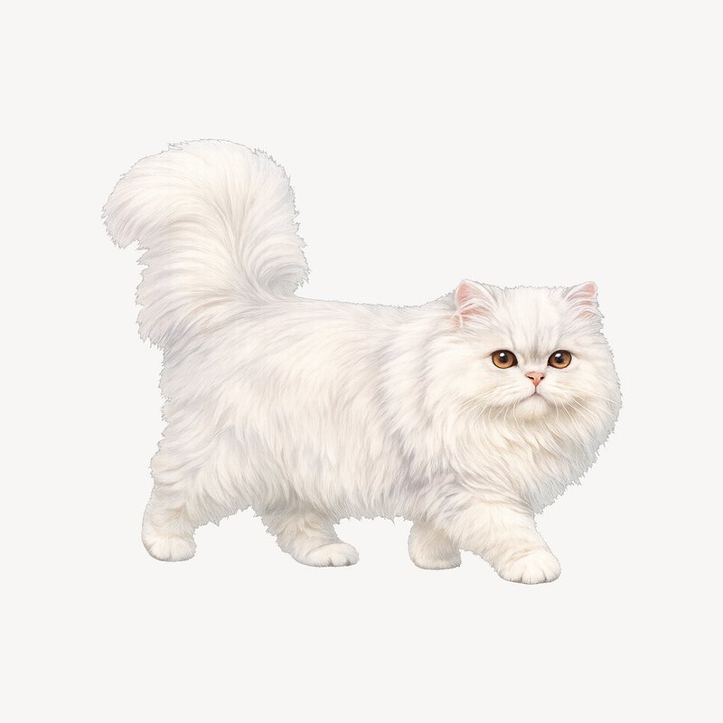 Fluffy white Persian cat illustration. https://www.rawpixel.com/image/25307426/fluffy-white-persian-cat-illustrationView license