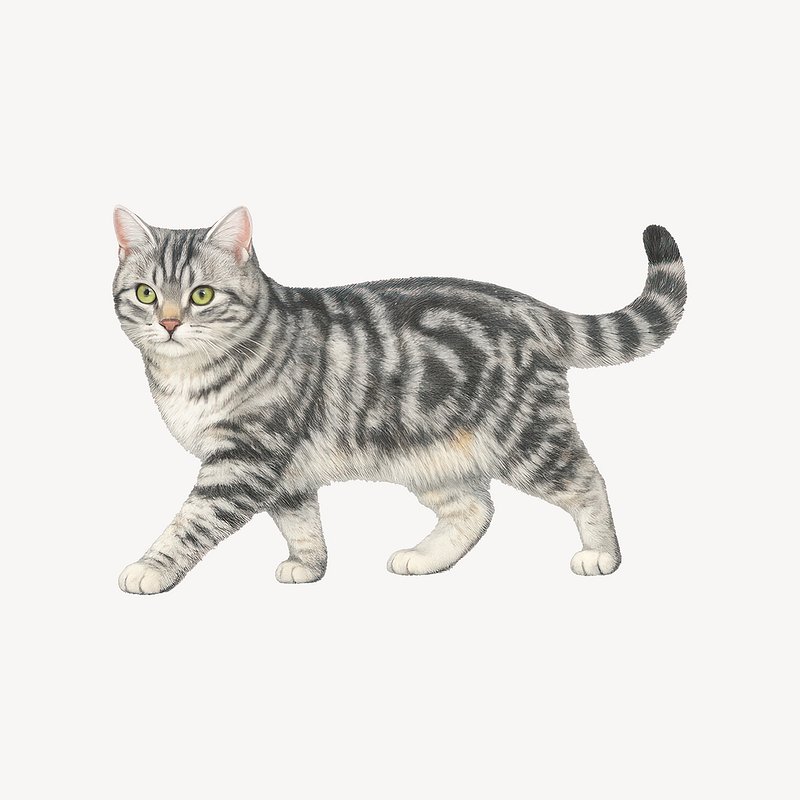 Realistic walking tabby cat illustration. https://www.rawpixel.com/image/25307246/realistic-walking-tabby-cat-illustrationView license