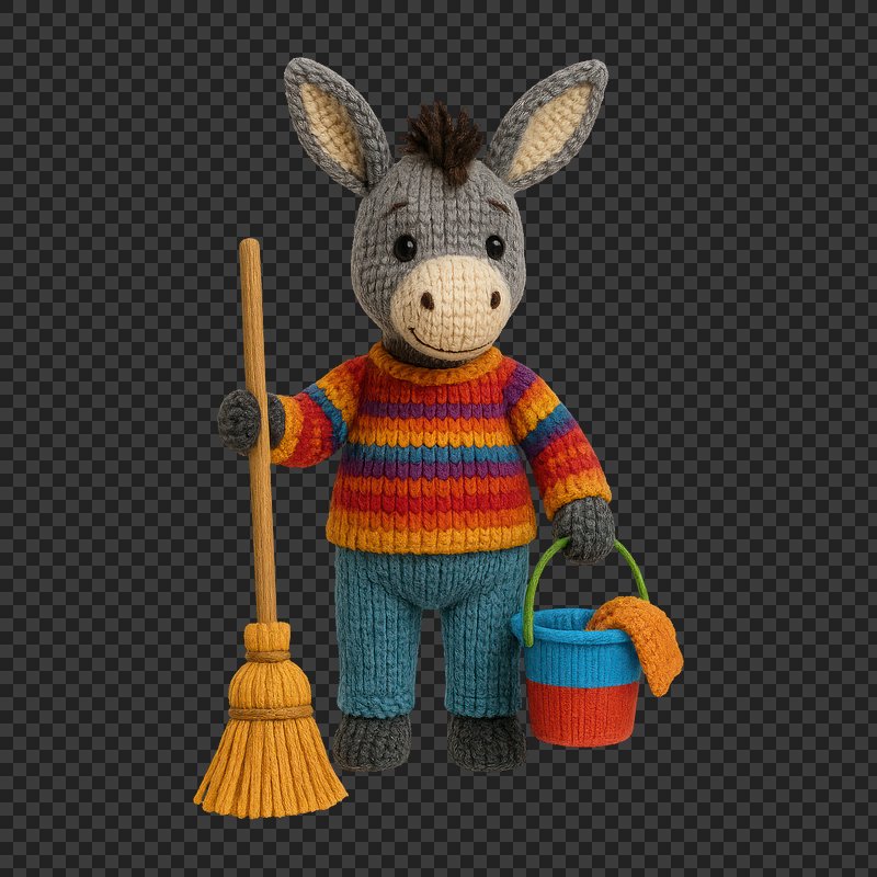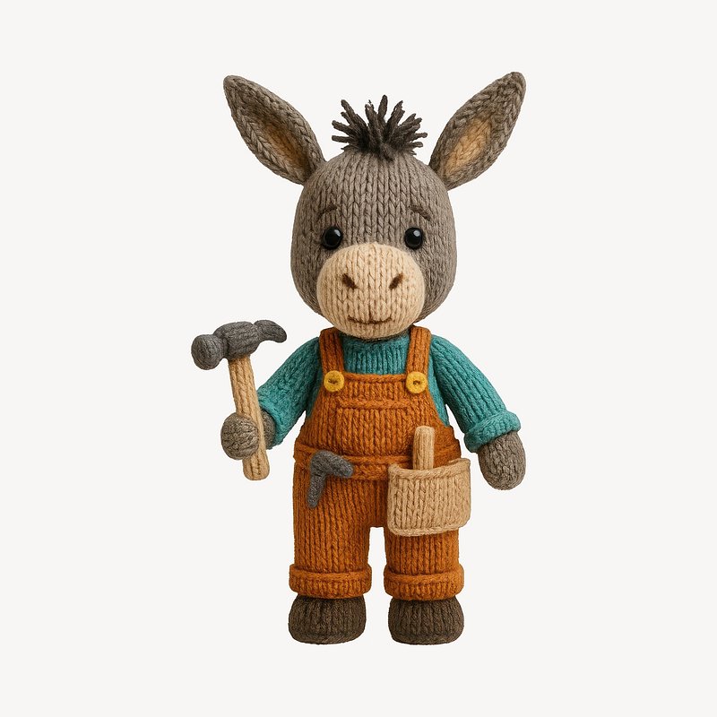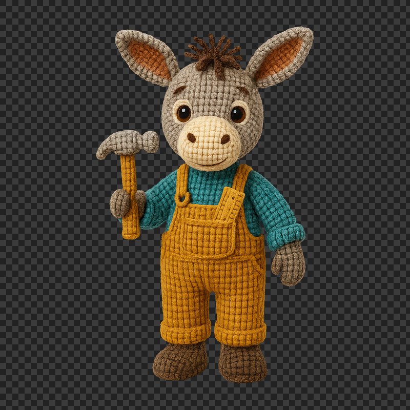PNG Knitted donkey toy holding tools. https://www.rawpixel.com/image/24445100/png-knitted-donkey-toy-holding-toolsView license