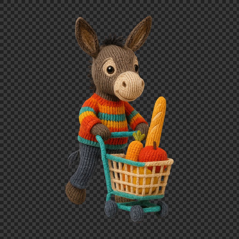 PNG Knitted donkey shopping adventure https://www.rawpixel.com/image/24439752/png-knitted-donkey-shopping-adventureView license