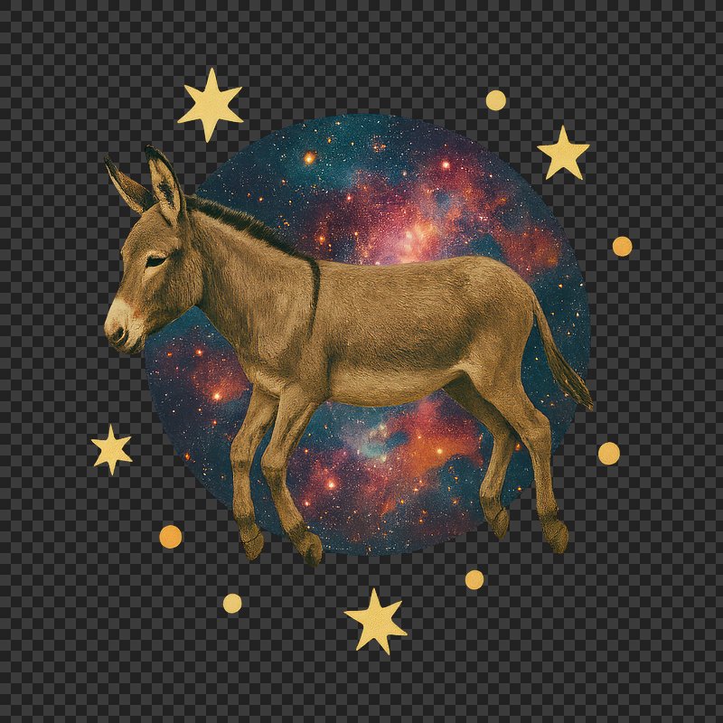 PNG Donkey floating in cosmic space. https://www.rawpixel.com/image/24267228/png-donkey-floating-cosmic-spaceView license