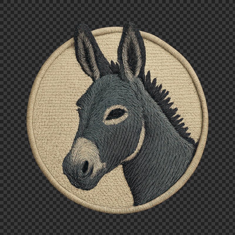 PNG Embroidery donkey patch design. https://www.rawpixel.com/image/24379140/png-embroidery-donkey-patch-designView license