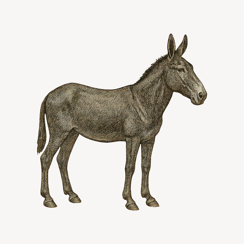 Detailed vintage donkey illustration. https://www.rawpixel.com/image/24346087/detailed-vintage-donkey-illustrationView license