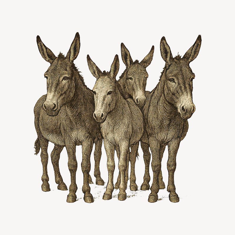 Four donkeys detailed illustration. https://www.rawpixel.com/image/24344394/four-donkeys-detailed-illustrationView license