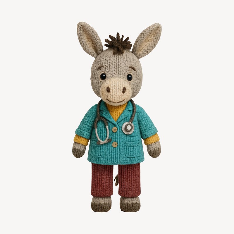Crochet donkey doctor toy illustration. https://www.rawpixel.com/image/24530287/crochet-donkey-doctor-toy-illustrationView license