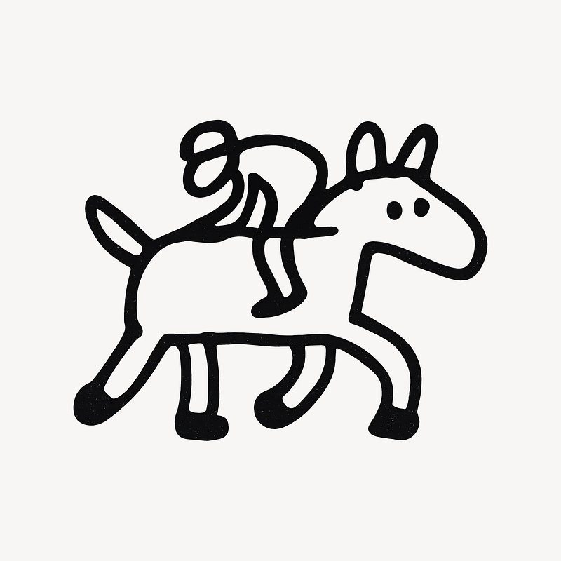 Minimalist donkey rider illustration. https://www.rawpixel.com/image/24599442/image-background-png-horseView license