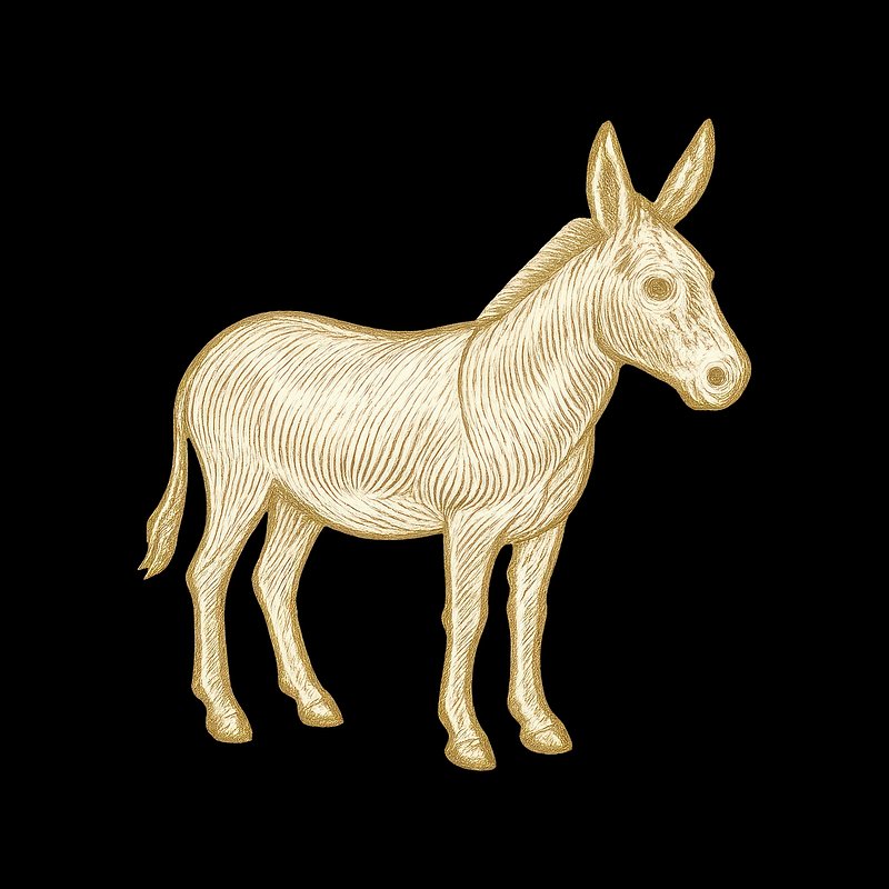 Golden donkey illustration on black. https://www.rawpixel.com/image/24536033/golden-donkey-illustration-blackView license